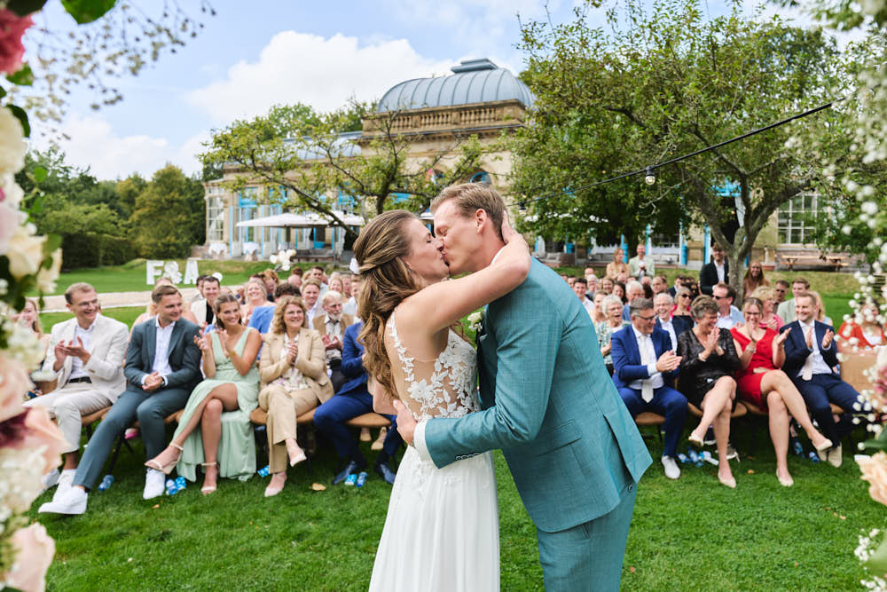 Een korte lunch volgt en zodra iedereen is uitgegeten en de twee families elkaar hebben leren kennen, is er tijd voor het bruidspaar en hun familie om zich voor te bereiden op de ceremonie. De moeder van Shuto is prachtig traditioneel Japans gekleed en loopt vol trots naast haar zoon om hem weg te geven aan Mark. Er volgt een luchtige ceremonie in de grote zaal van Het Spaansche Hof en met de kus, de ringen en de handtekeningen zijn Mark en Shuto officieel getrouwd.