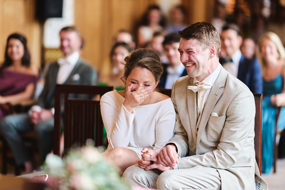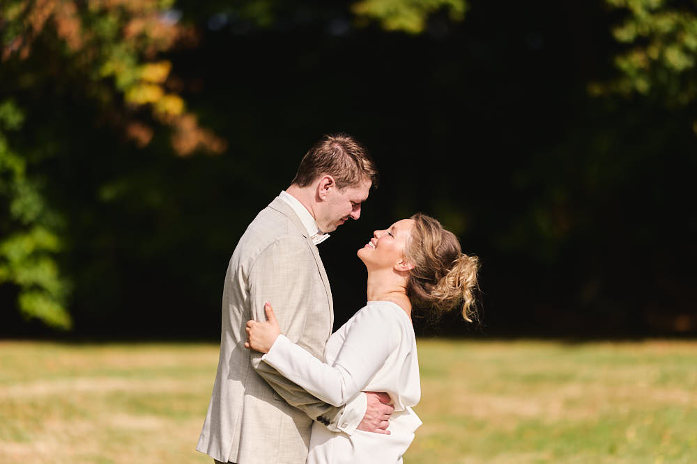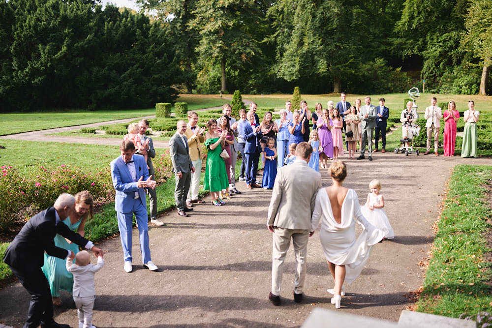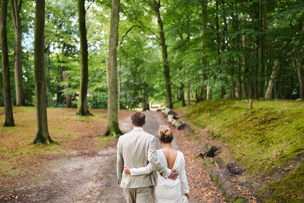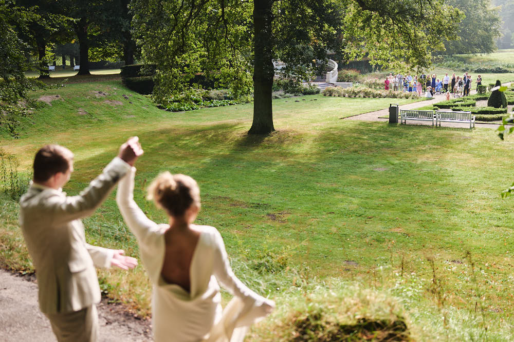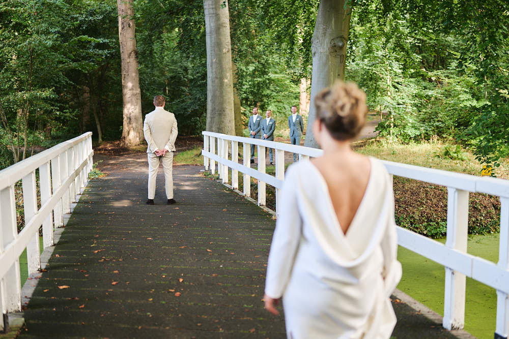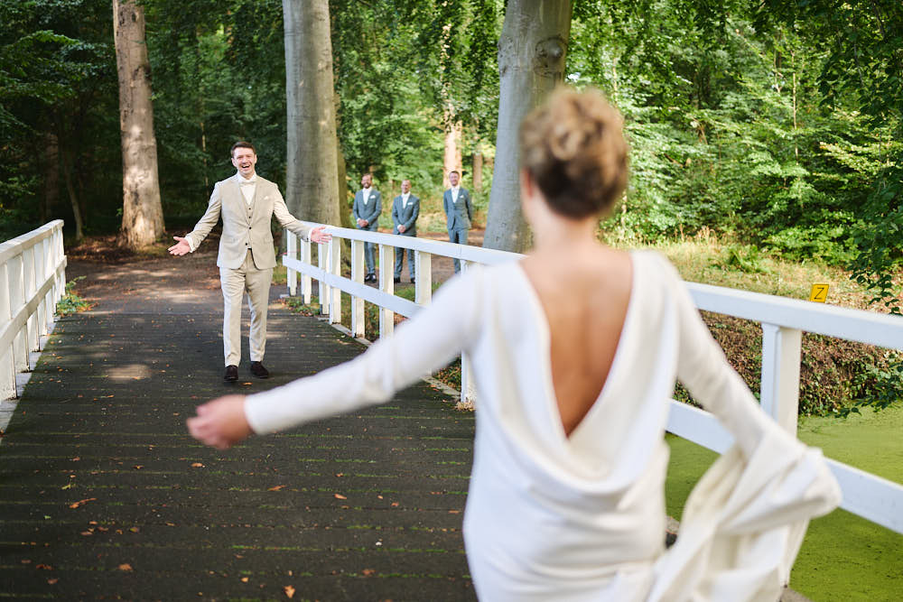 Ik start mijn dag bij bruid Liselotte om kort de gezelligheid bij haar thuis waar ze zich klaarmaakt vast te leggen. We vertrekken als snel richting Landgoed Clingendael waar we de first look doen en trouwfoto’s maken. Met grote verbazing ziet Bart zijn bruid voor het eerst in haar jurk en later krijgen ook de gasten de kans om het bruidspaar voor het eerst te zien. We lopen een rondje op het prachtige Clingendael om wat trouwfoto’s te maken en stoppen voor een korte lunch en een drankje.