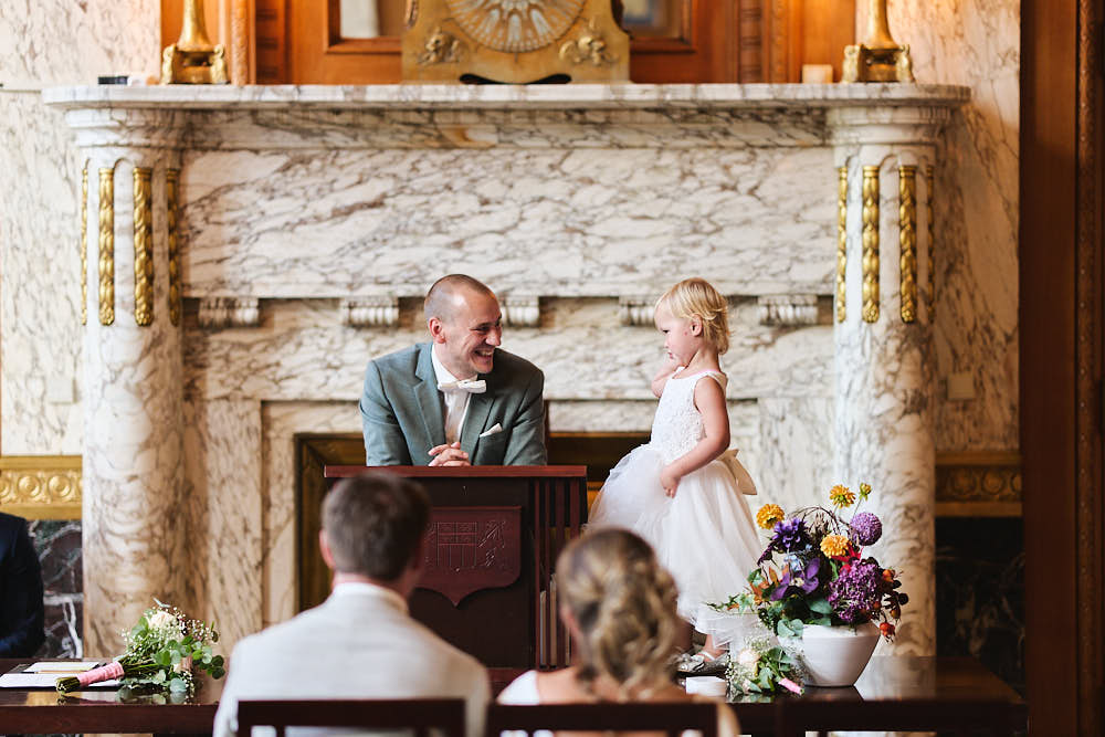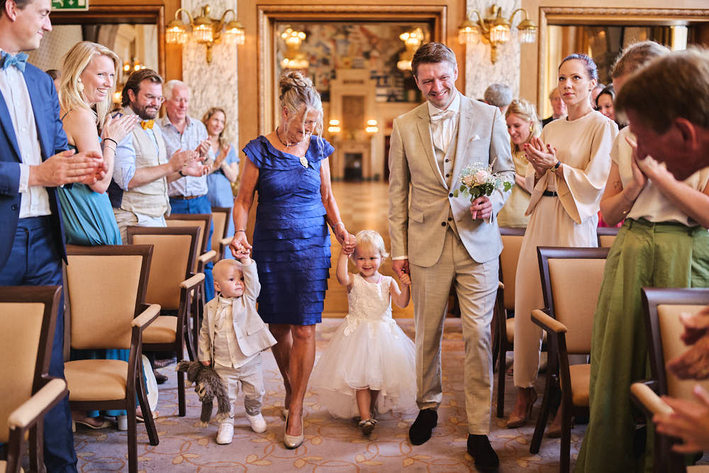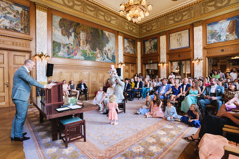 En dan op weg naar Rotterdam, want daar zal in het stadhuis de trouwceremonie plaatsvinden. Het is een prachtige grote zaal in dit stadhuis en de ceremonie verloopt vol liefde en chaos van kinderen die aandacht willen.