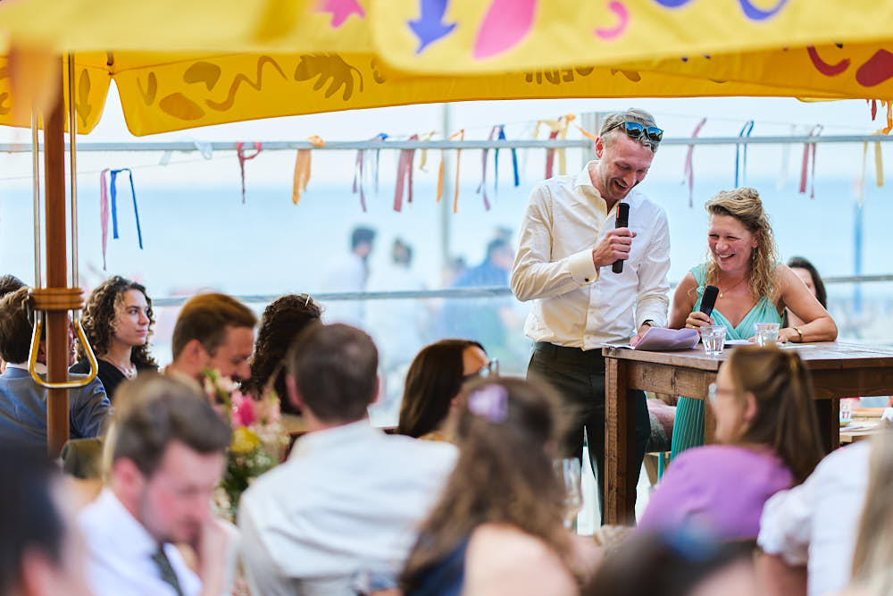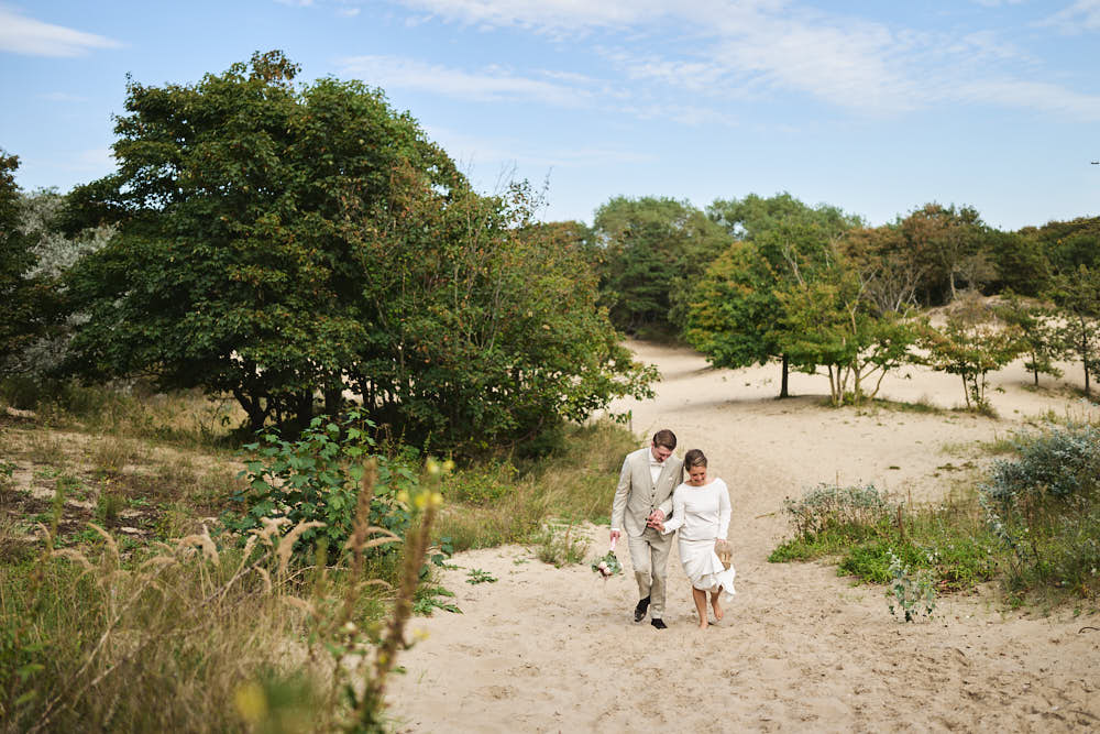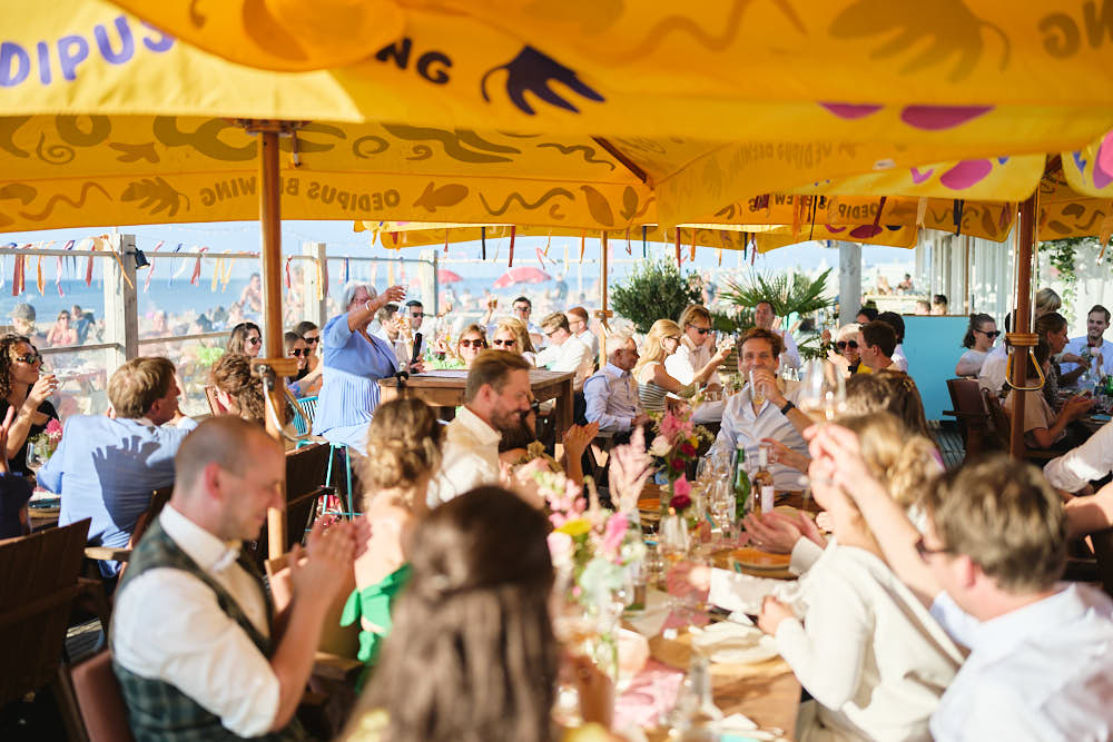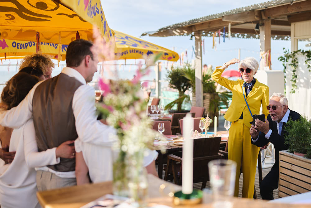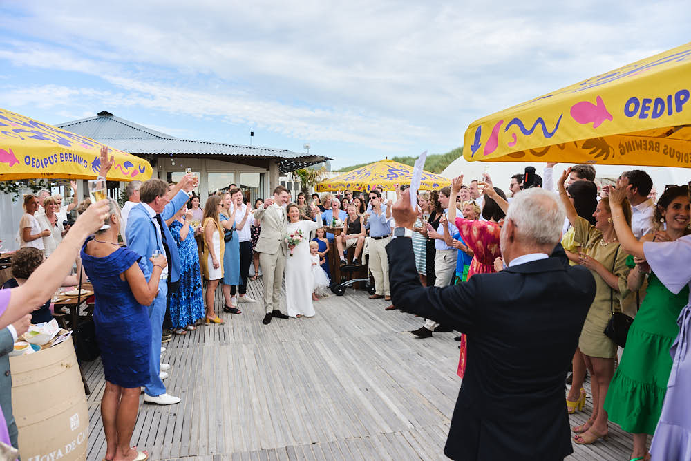 Na de mooie ceremonie gaan we richting het strand om nog even kort wat trouwportretten te maken in de duinen, waarna we bij Strandhuis Mavi aankomen om de rest van de dag te vieren. De zon schijnt, er komen prachtige speeches voorbij en de bruiloft wordt afgesloten met een spetterend feest.